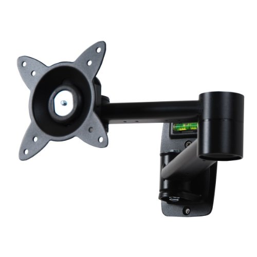 The flexible swing LCD Wall mount supports up to 33 lbs LCD flat screens. The monitor wall mount attaches to your VESA standard monitor with its square steel plate, and the unique joint gives you complete movement in all directions, including portrait and landscape rotation. This mount folds flat against the wall 3.5" or extends out up to 18". Its classic black finish elegantly complements offices, conference rooms, merchandising displays, hotel rooms or any room in the home. This single arm can provide 180 degrees of swivel for optimum viewing. Ships pre-assembled for fast and easy installation. This mount can add a locker, to prevent the TV to be removed and stolen. The locker is not included.